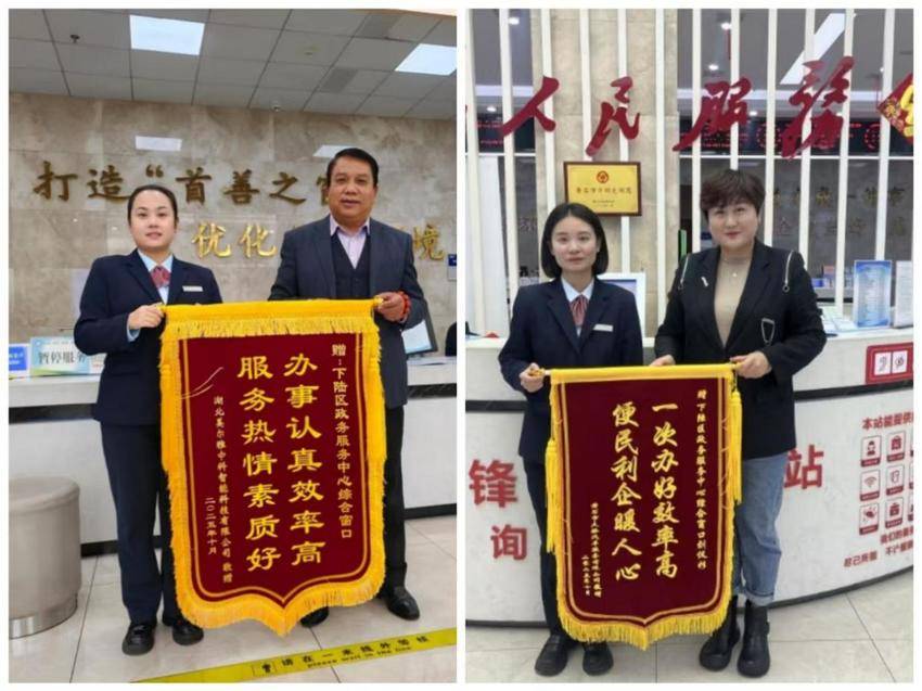 近日,下陆区政务服务中心的“荣誉墙”再添暖心印记——“办事认真效率高,服务热情素质好”“一次办好效率高,便民利企暖人心”“优质服务暖人心,高效办事传真情”“服务热情周到、办事快捷高效”一面面写满赞誉的锦旗,一声声饱含深情的感谢,是政务服务窗口最真实的写照。