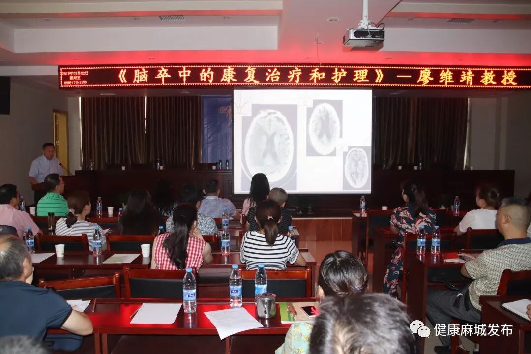 活动结束后,武汉大学中南医院神经康复科主任、博士生导师廖维靖教授做了题为《脑卒中的康复治疗和护理》的培训讲座。廖维靖教授以诙谐幽默的方式演绎偏瘫病人的运动功能障碍,引出了疾病对康复治疗及护理的需求。随后,以旧的康复观念为切入点,深入浅出地讲解了现代综合康复治疗精髓,解读了神经内科与神经康复科密切合作成为范例的经典教学病案。交流会上,廖维靖教授与现场的参训人员进行互动交流,气氛融洽温馨,欢声笑语,掌声不停,反响强烈。