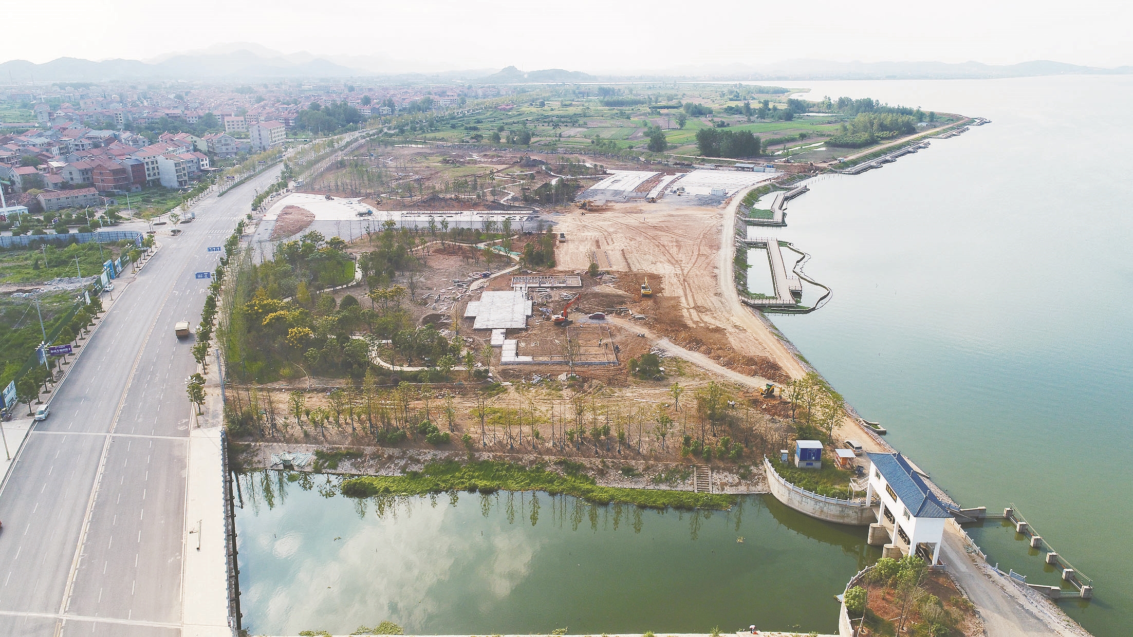 武山湖南门户是武山湖环湖绿道的重要节点,也是武穴市新建的休闲广场,总投资1.3亿元,占地面积11万平方米。截至目前,已经完成总工程量的75%,预计今年年底向市民开放。