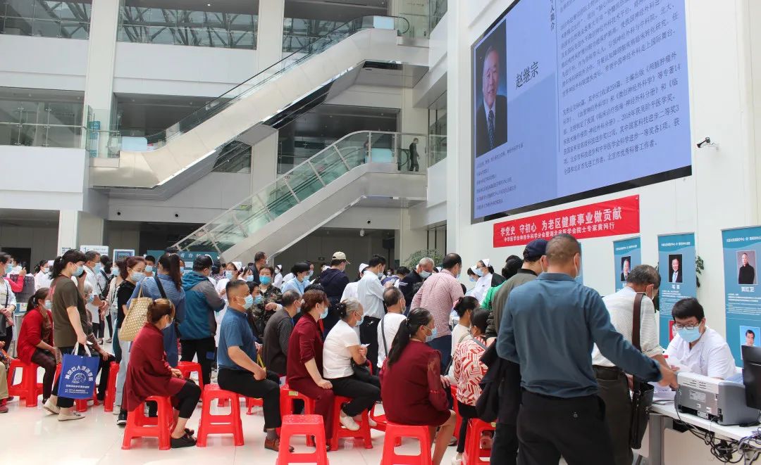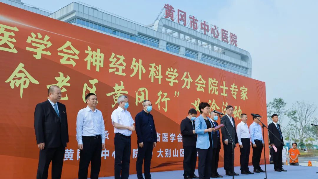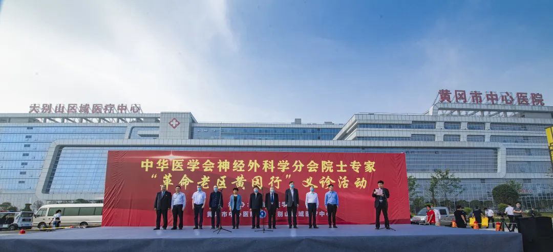 5月8日,一场特殊的党史学习教育在黄冈市中心医院举办。中华医学会神经外科学分会20余位院士专家“革命老区行”走进黄冈,在大别山区域医疗中心开展义诊、学术交流等活动。