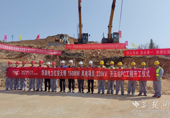 荆楚网(湖北日报网)讯(通讯员毛红平 张正红)3月6日,华润电力红安天明风电项目在红安县华家河镇高山村顺利开工,全面吹响新能源建设的号角。