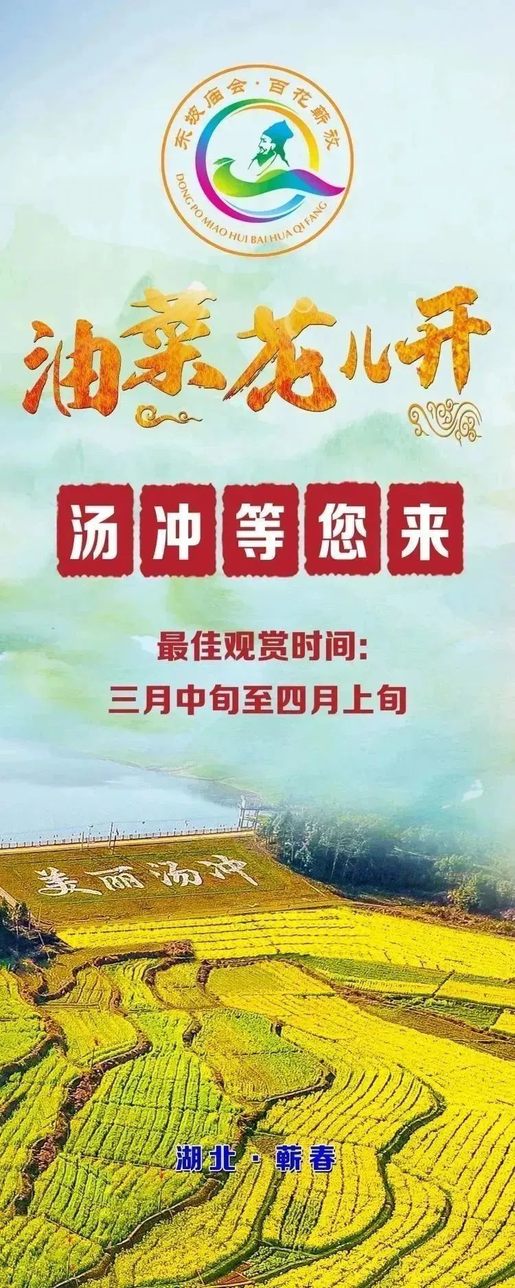 篱落疏疏小径深,树头花落未成阴。儿童急走追黄蝶,飞入菜花无处寻。3月18日-20日,东坡庙会·百花蕲放——“油菜花儿开 汤冲等你来”油菜花节将在刘河镇浓情开幕!