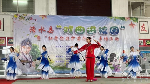荆楚网(湖北日报网)讯(通讯员 万小庆)6月6日,浠水县“戏曲进校园”暨“扫黄打非护苗行动”专场活动在团陂中学举行。县楚剧团演员们用独特的汉族地方声腔,带来一场精彩的戏曲视听盛宴。