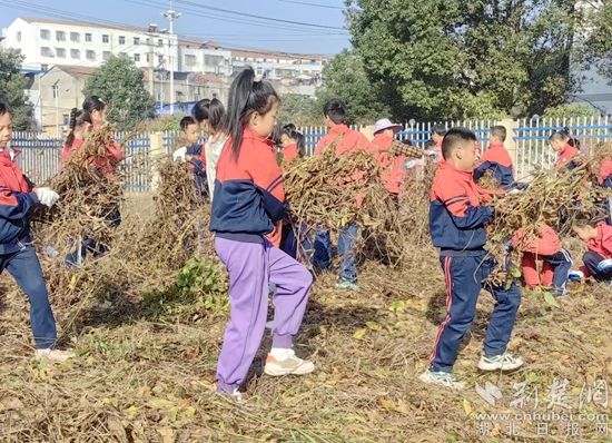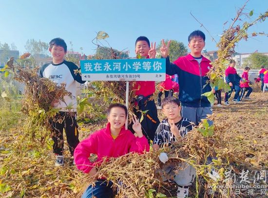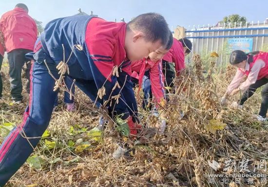 荆楚网(湖北日报网)讯(通讯员 刘志勇)“春种一粒粟,秋收万颗子”。红安县永河小学春天播种的黄豆,在孩子们的精心培育下,颗粒饱满,迎来了丰收的时刻。10月16日,红安二小永河校区组织3—6年级学生到劳动实践基地开展“收豆”活动。活动邀请部分家长到校指导。