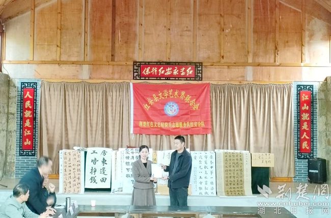 荆楚网(湖北日报网)讯(通讯员 毛红平 夏晓旭)11月10日,湖北红安革命纪念地管理中心、红安县文联、铜锣诗社和县书法家协会艺术家代表一行到八里湾镇东边田村张培刚故居举办文艺作品捐赠活动仪式。