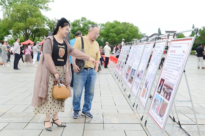 在广场的两边,摆满了图文并茂的非遗展板,一大批国家级、省级、市级及部分县级代表性项目纷纷亮相,50多块非遗展板集中展示了黄冈市近些年来非遗保护生动实践和非硕成果。观众纷纷驻足观看、细细品味或拍照留存。