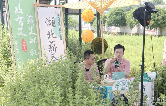 “中国艾草只有二种。一种是‘蕲艾’、一种是‘其他艾’。蕲艾全草均可入药,是中药草中极少同时具备药用、灸用、食用、日用的宝贵中草药……”6月6日上午10点开始直播预热,14:00-18:00正式直播。主播们向大家展示蕲艾香包、蕲艾肩颈贴等相关产品,直播间里气氛不断高涨。
