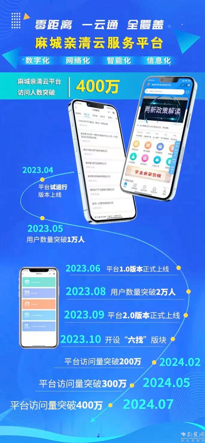 荆楚网(湖北日报网)讯(通讯员 曾晓春)8月5日,笔者从麻城市获悉,截至目前,该市创新打造的“亲清云服务平台”,注册用户近2.3万人,注册企业608家,平台总访问量突破400万人次,完成项目申报数1332个,发布各类惠企信息712条。