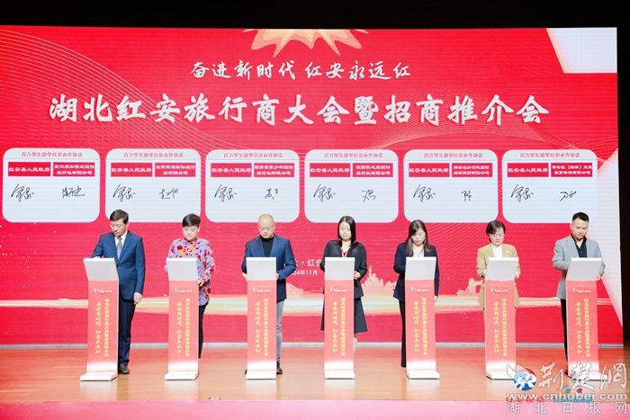 “将军故里遍英雄,红色传承永不忘;好山好水好文化,笑逐颜开贵客来。”红安县委书记刘堂军在致辞中介绍,近年来,红安县运用供应链思维整合资源、撮合供需,聚焦“吃住行游购娱”要素供给,乡村旅游、研学游、康养休闲游等蓬勃发展,红色旅游已成为富民强县主导产业。