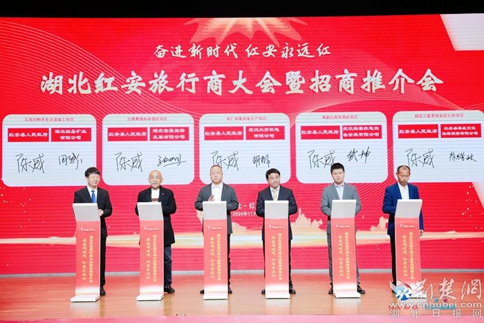 荆楚网(湖北日报网)讯(记者陶辉 通讯员黄发成 吴慧 毛人杰)奋进新时代,红安永远红。11月13日下午,湖北红安旅行商大会暨招商推介活动在红安县高桥镇桂花园酒店举行。