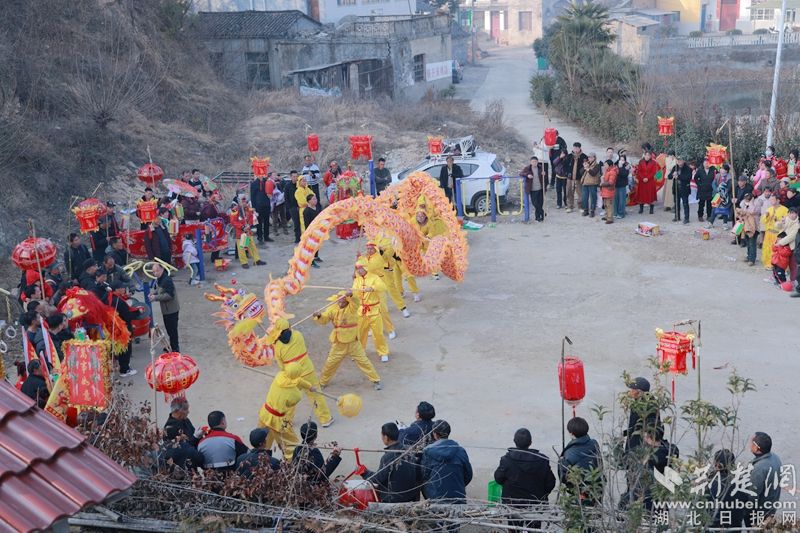 荆楚网(湖北日报网)讯(通讯员石杰 赵炳长)春节期间,红安县七里坪镇马鞍山村热闹非凡。一场别开生面的“舞龙灯”活动正在这里上演。作为当地传承百年的春节民俗,舞龙灯不仅为村民们带来了浓浓的年味,也吸引了周边众多游客前来观赏,成为新春佳节里一道亮丽风景线。