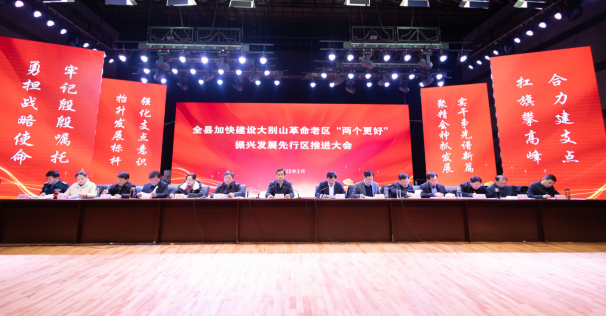 2月9日上午,红安县加快建设大别山革命老区“两个更好”振兴发展先行区推进大会召开。2025年,红安县将牢记殷殷嘱托、强化支点意识、勇担战略使命,扛旗攀高峰、合力建支点,加快建设大别山革命老区“两个更好”振兴发展先行区。
