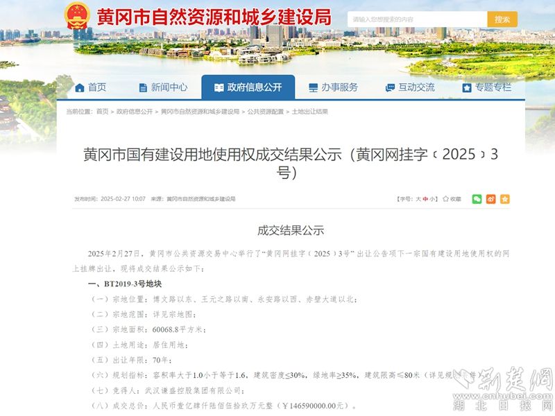 该宗土地成功出让,将进一步提振黄冈市区房地产市场信心,对改善市区人居环境,提升城市形象和功能品质具有积极意义。