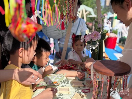 在端午主题体验区,家长和孩子们用五色丝线编织手环,了解“驱邪避毒”的古老寓意,手工制作香囊、艾草花束,体验亲子钓粽子,既有挑战又有品尝粽子的乐趣。在创意工坊和活力挑战区域有“活字印刷术”、“扎染”、“投壶”等传统游戏和非遗文化,还有“手绘父母”、“穿越火线”、“赶鸡入笼”、“罐罐鱼”等游戏,亲子同乐打造专属美好初夏。