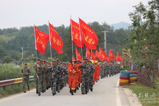 当日,黄冈市应急管理局、湖北省第三地质大队、黄冈市消防救援支队以及英山应急、水利、消防、自然资源等20余家单位在英山县方家咀乡、温泉镇、杨柳湾镇、金家铺镇4地,开展演练。演练以"人民至上、生命至上"为理念,模拟实战抢险救援,通过多险情、多力量、多场景,着力提升防汛应急实战和协同指挥水平,探索完善军地应急联动机制,为防大汛、抢大险、救大灾打下基础。