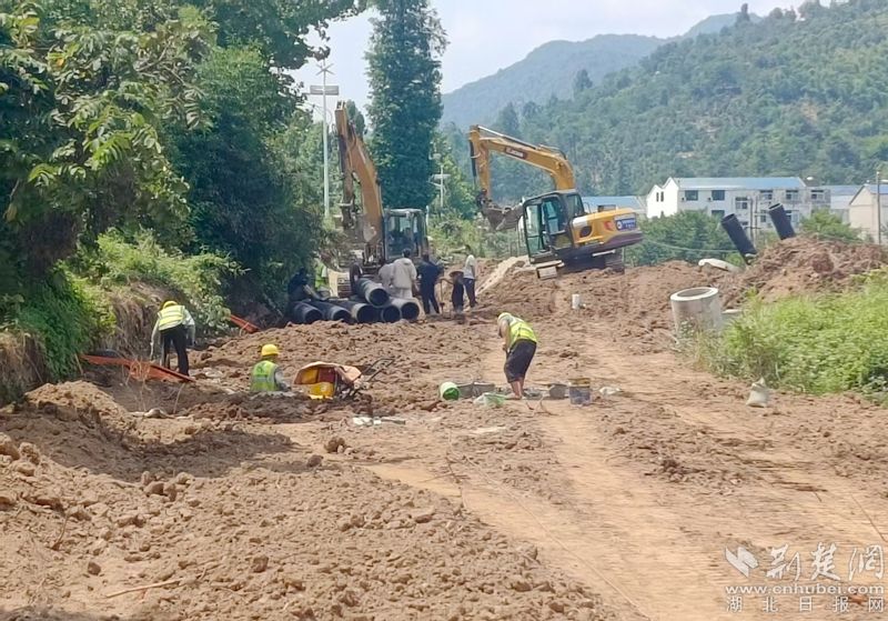 荆楚网(湖北日报网)讯(通讯员毛红平 吴世泰)7月5日,烈日炎炎,红安县天台山村沿407省道左边道路上,几台大型的机械正在施工,师傅们顶着烈日正在埋管、砌浆。这是该村抢抓机遇,建好景区基础设施,发展旅游业的又一举措。