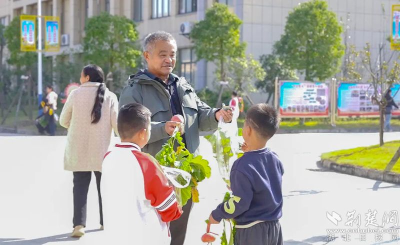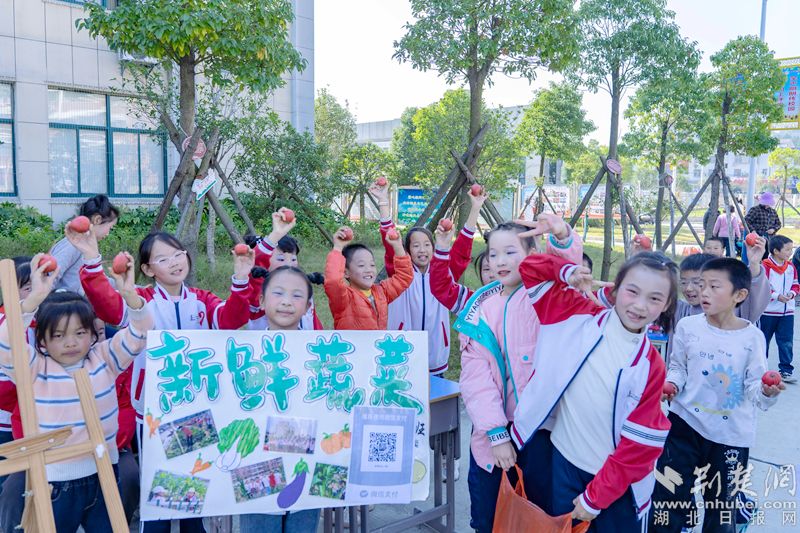 荆楚网(湖北日报网)讯(通讯员 刘志勇)“走过路过不要错过,我们种的蔬菜,价格实惠、健康美味,快来选购吧!” 11月21日,红安二小永河校区的校园内,叫卖声、欢笑声此起彼伏。当天,该校第三届“种豆得豆”校园丰收节热闹开幕,其中最受欢迎的“蔬菜大卖场”环节,同学们亲手采摘的各类蔬菜很快销售一空。