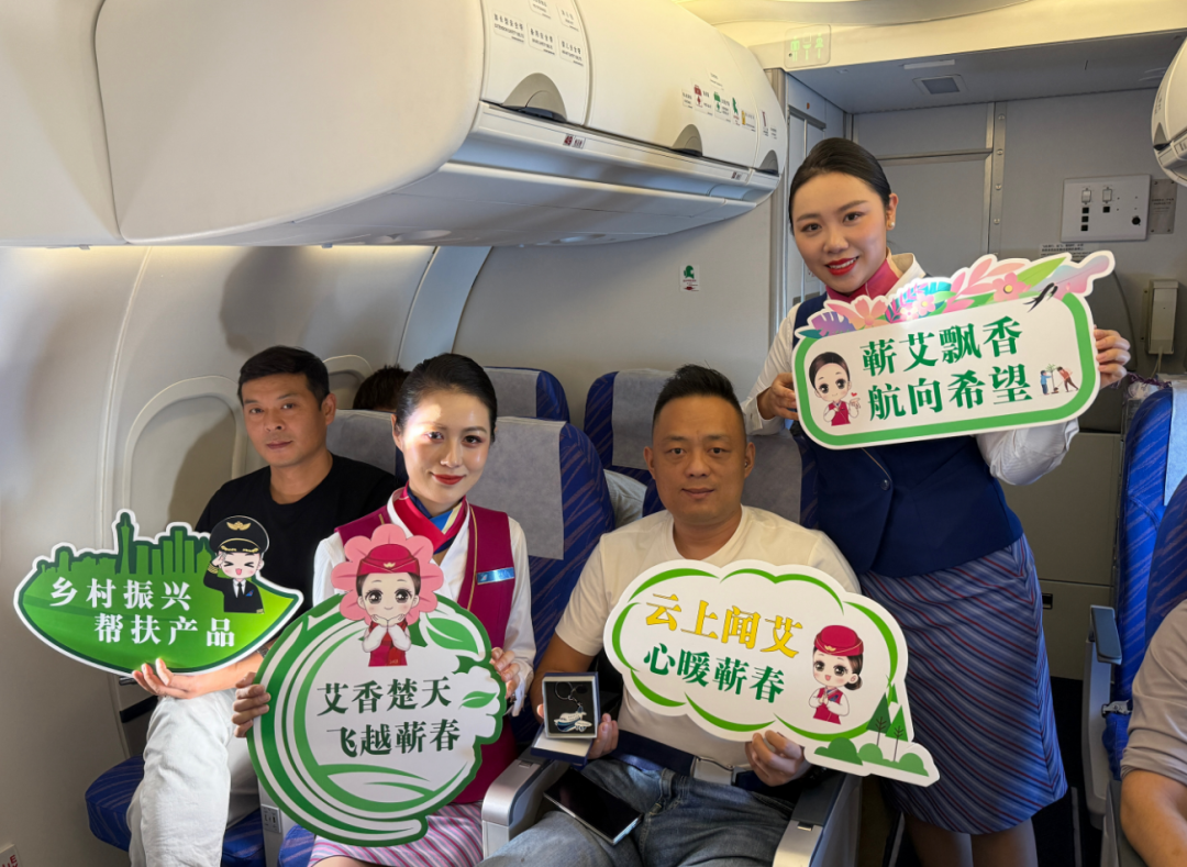 2025年9月21日起,南航湖北分公司在武汉飞往珠海、贵阳、沈阳、成都等地的多条航线上,推出“艾香楚天,飞越蕲春”主题航班。这不仅是一次航班活动,更是一次以蓝天为幕、以艾香为媒的“蕲艾推介会”,是南航为精准帮扶彭思镇余凉村,精心打造的“航空+文旅”特色体验。