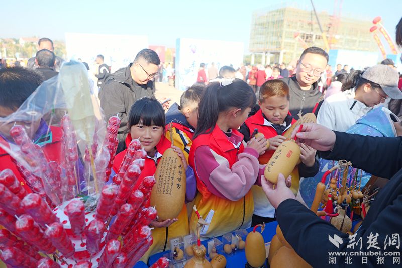 “舌尖上的黄州”展销区: 51个展位琳琅满目,黄州萝卜、幸福胖头鱼、爱媛橙、老叶路大蒜……百余种特色农产品让人挑花眼。现场制作的萝卜宴、炸鱼丸、烫豆丝香气四溢,引得游客纷纷试吃、抢购。