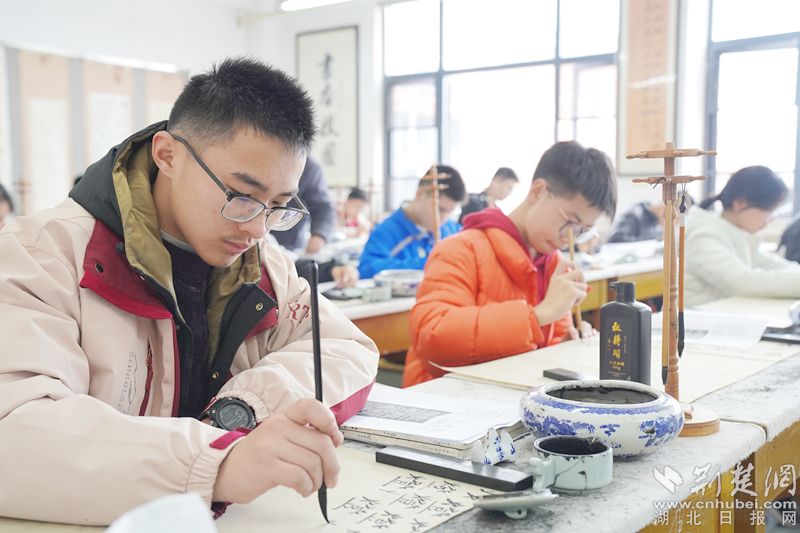 荆楚网(湖北日报网)讯(记者陶辉 通讯员付海洋 汪秀兵)11月10日上午,在黄冈中学凝晖楼的教室里,阳光透过窗户,洒在铺开的宣纸上。学生们手握毛笔,笔尖轻蘸墨汁,正全神贯注地勾勒一幅写意花鸟的轮廓,让传统艺术的韵味在笔触间缓缓流淌。不远处,隔壁教室传来戏曲唱腔,那是"戏曲表演"选修课的学生正在排练《霸王别姬》的经典片段。