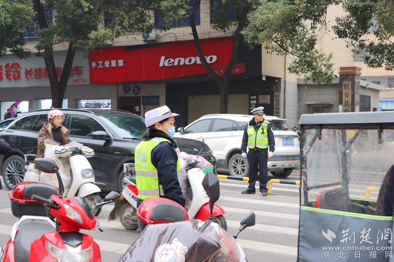 由“民警+值班领导+保安”组成的护学力量全员到岗。民警引导接送车辆有序停靠,执勤交警特别关注幼儿身材矮小、易入盲区的特点,及时护送或抱起靠近车行道的孩子。在红绿灯下,民警蹲下身子与孩子平视交流,耐心灌输安全常识。