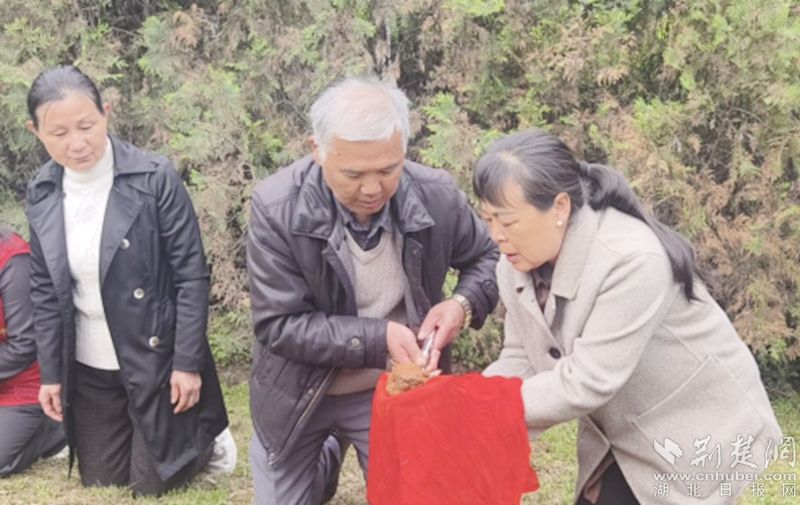 王德清(小名王德位),1915年生于红安县高桥镇余家边村,1930年参加红军,曾任红三十军88师268团团长,1933年在四川万源反“六路围攻”作战中壮烈牺牲,年仅18岁。此次,王德清烈士的孙女王春红、外孙女跨越千里同行,在烈士墓前敬献花篮、洒下家乡红土,含泪告慰英灵:“爷爷,我们带您回家了!”