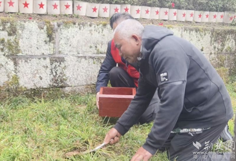 张泽艳,1912年生于红安,1931年3月加入红军,曾任红四军第三十团政委,1933年9月在四川巴州作战牺牲,年仅21岁。时隔93年,56岁的侄儿张克争带着家族三代人的遗愿,随志愿队来到伯父墓前,抱着墓碑失声痛哭:“奶奶、父亲临终都嘱咐我,一定要找到您、带您回家,今天我们做到了!”