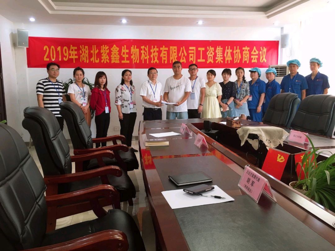 6月26日,湖北紫鑫生物科技有限公司召开2019年工资集体协商会议,会上公司法人代表和公司工会在6名职工代表的鉴证下,签订了技术工人待遇专项集体合同。这既是开发区·铁山区首份技术工人待遇专项集体合同,也标志着开发区·铁山区工会以集体合同制度落实技术工人待遇工作迈上了新台阶,并体现区总工会突出维护职能,积极探索和推行工资集体协商工作,在促进全区营商环境发展做出了贡献。