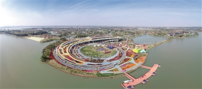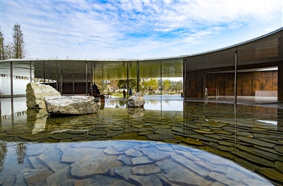 “黄石主题日”开幕式活动结束后,游客直奔不远处的“黄石园”——荆州园博园核心区“楚韵”游赏区A06展区。园区总面积5153平方米,主题名称为“黄石画廊”。设计以水为畔、以林为衬、以江为形、以石为境,将长江、磁湖、铜绿山等作为设计元素,运用134株水杉、铜草花等花卉布景,以一条流线型艺术廊道,辅助声、光、电等高科技手段,展示黄石的历史、文化与科技。
