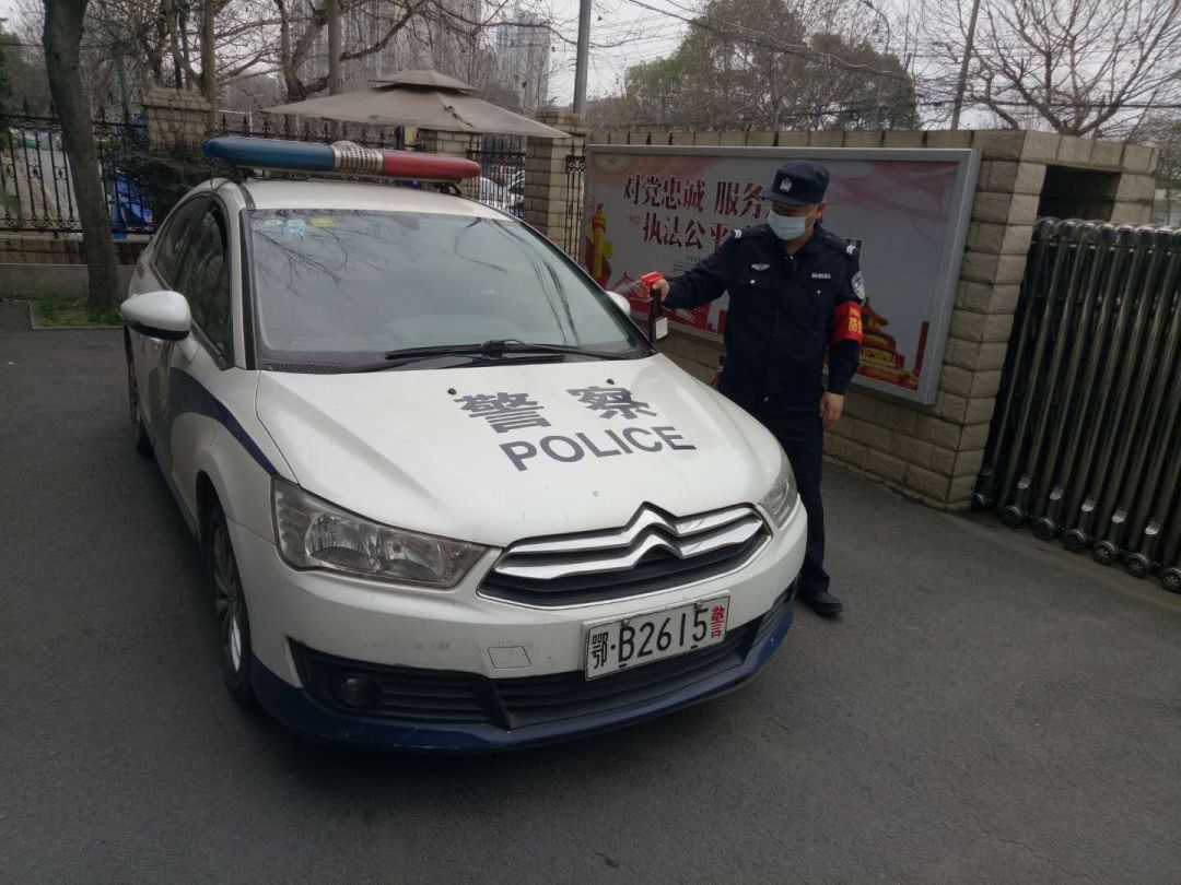 匆匆吃完午饭,陆雷便拿起消毒液,细心地为警车进行消毒工作。为了不影响正常出警办公用车,他总是利用午休时间和下班时间完成车辆消毒工作。