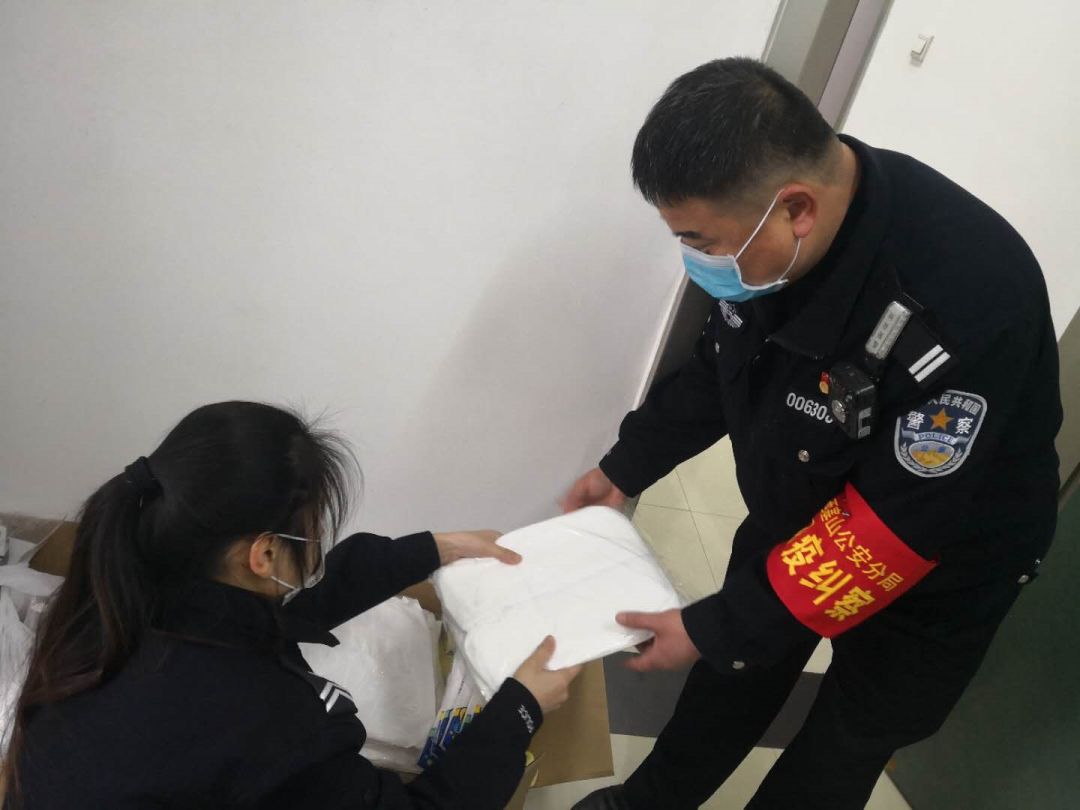 蹲在地上清点、发放防疫物资的瘦小身影正是澄月派出所内勤辅警陈绪秋。除了配合内勤民警做好各类信息的收集上报,陈绪秋还承担着防疫物资出入库、办公耗材保障、体温监测等事物。