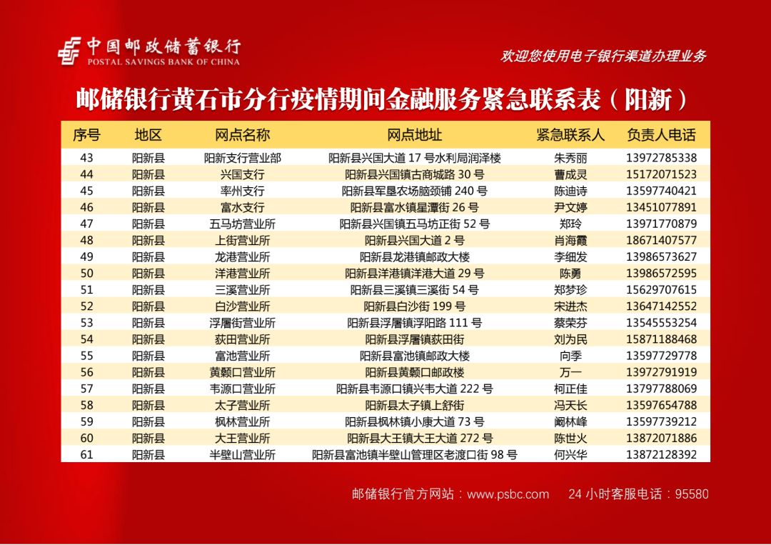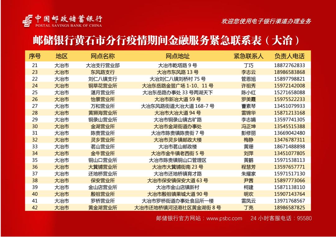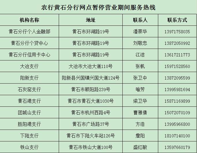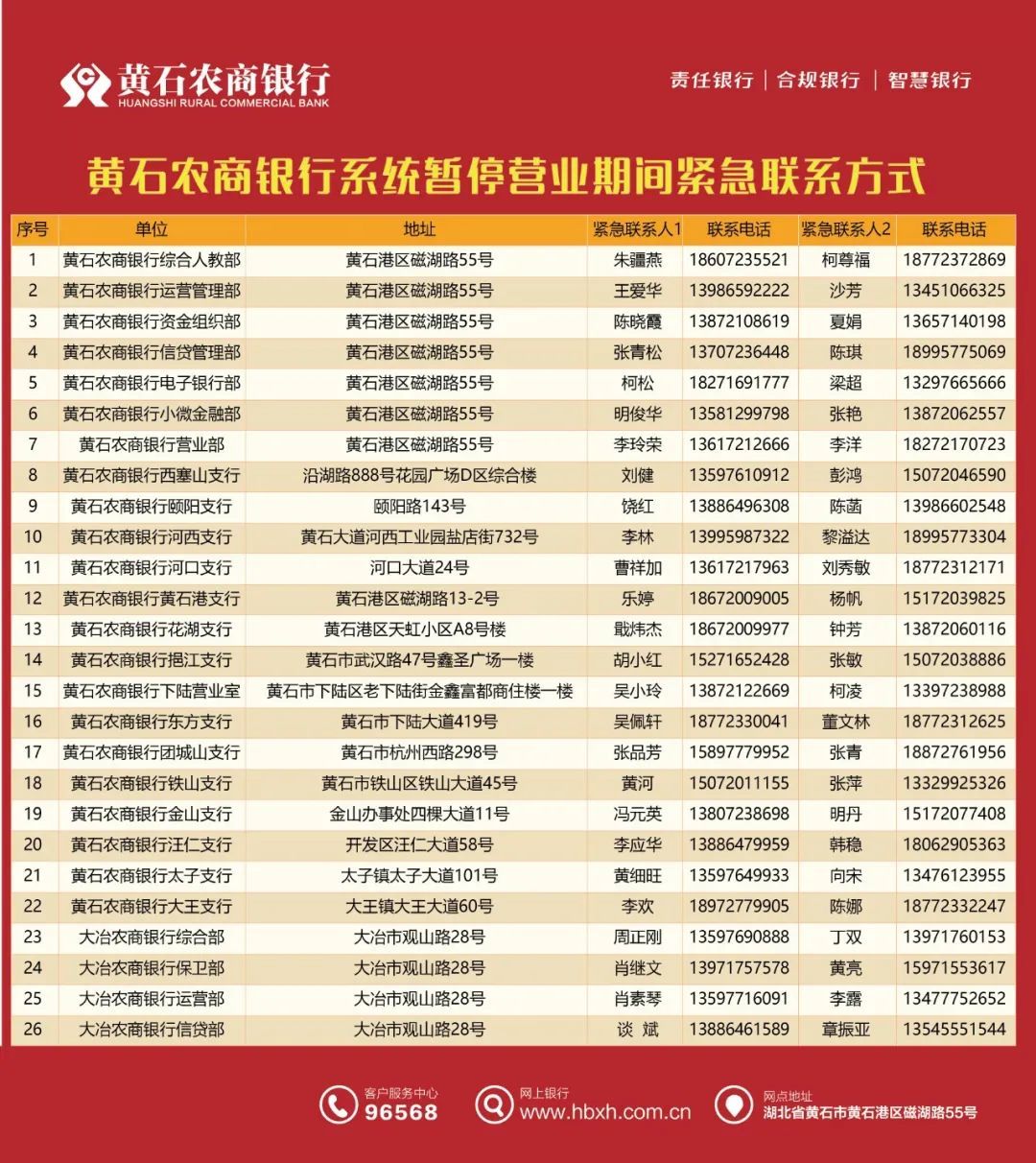 疫情防控期间,在全面落实黄石市“不见面、少见面”疫情防控要求的前提下,尽可能满足广大市民的线下金融服务需求,人民银行黄石市中支组织各银行机构安排应急网点和紧急联系人。目前,各银行机构已经通过网点公告、微信公众号、网络媒体等多种形式告知客户具体情况。广大市民如有紧急的取现业务需求,可直接拨打银行机构对外公布的联系电话,届时银行机构将安排工作人员办理。湖北银行黄石分行