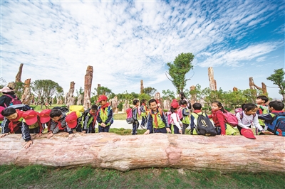 在园博园国际树化石林研学的孩子们