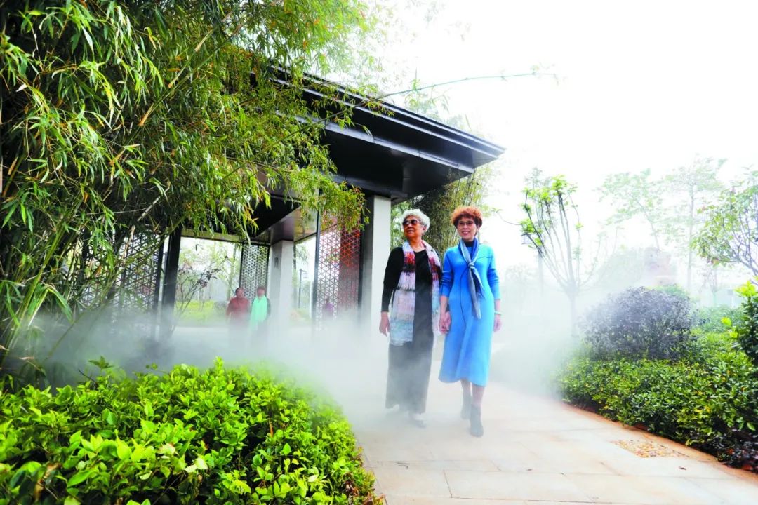 公园设有“辕门叠翠”“水墨青山”等多个景观节点,以新中式的风格布置假山、叠石、景亭、花径、景墙,结合周边地形地貌和原生植物,一步一景、步移景换。