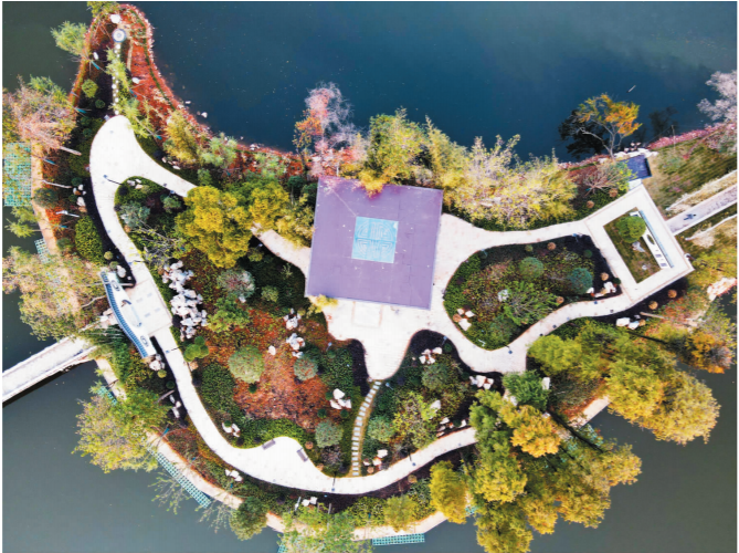 市民从青山湖九曲桥进入即可步行至打鼓墩公园