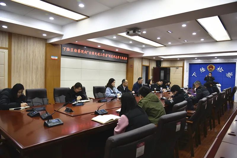 座谈会上,党组书记、检察长谢峰介绍了刘亮(现任下陆区检察院党组副书记、副检察长)同志的先进事迹,要求全院干警向身边的先进看齐,找差距补短板,立足工作岗位勤奋工作,不断争创检察佳绩,为下陆区经济社会高发展贡献应有的检察力量。