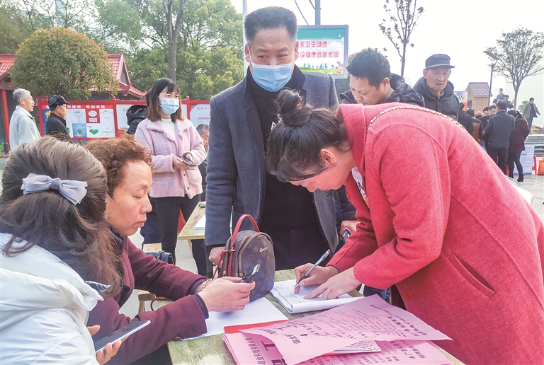 本报讯 (记者 殷珂 通讯员 吴强)12日,在大冶湖畔墈头广场,东岳路街道举行2021年“春风行动”劳动力转移招聘会。