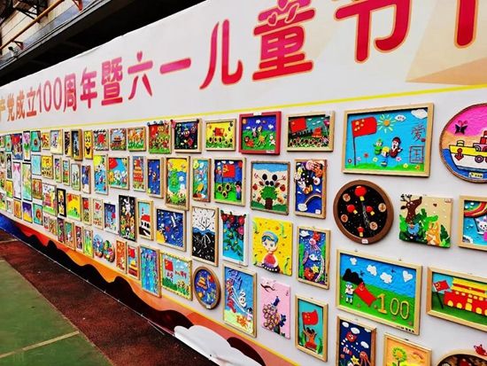 除了精彩、热闹的节目表演,学校操场两侧各年级学生的优秀书画、手工作品展览,也为孩子们的节日增添了不少瑰丽的色彩。