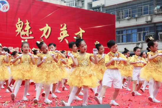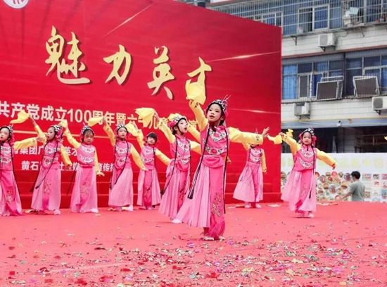为庆祝中国共产党成立100周年及即将到来的“六一”国际儿童节,今天(28日)上午,黄石市广场路英才学校在操场上举行了2021年“童心向党 魅力英才”庆六一活动 。