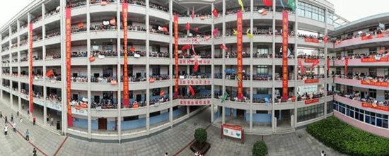 6月4日,黄石市第七中学举行“话语送祝福 同心共追梦”高考喊楼活动。高一、二年级全体师生为高三学子“喊楼”加油、送祝福。