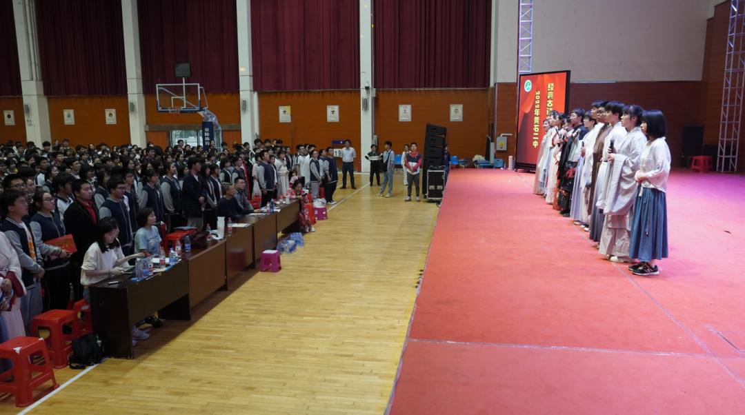 该校2022年典古诗文诵读大赛以“经典润心田 风雅正青春”为主题,全体高二年级的学生在学校大礼堂齐聚一堂,吟经典、诵诗文。