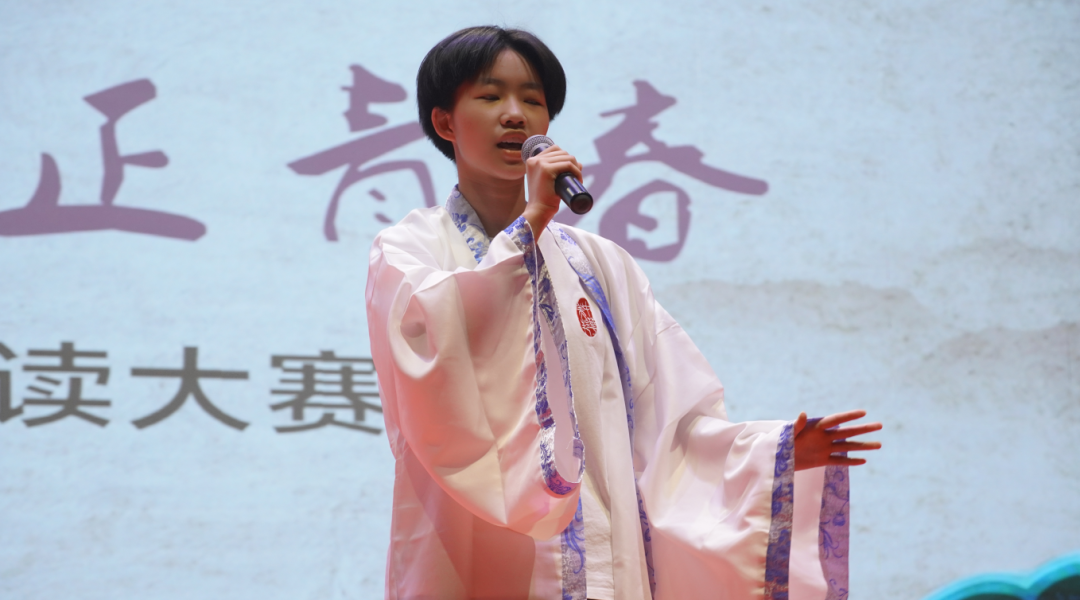 当天,该校举行了一场经典古诗文诵读大赛,参赛学生身穿汉服,用饱含感情、充满青春活力的声音,尽情展示自己对传统文化的热爱和理解。通过此次活动,不仅强化了学生对传统经典的记忆背诵,更丰厚了校园人文底蕴。