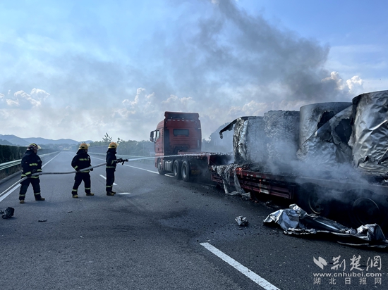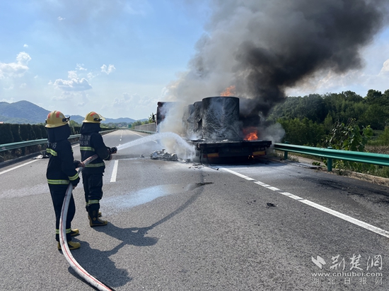 荆楚网(湖北日报网)讯(通讯员宁静 李凯)8月9日,一货车在高速上自燃,黄石消防紧急赶往救援。半个小时左右,火势得到有效控制,火灾也未造成人员伤亡。