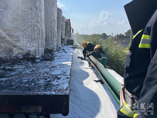消防人员立即在起火车辆附近设置警戒区域,同时架设水枪,利用泡沫覆盖对起火的轮胎进行处置。15时05分现场火势得到控制,随后救援人员又对货车车身、轮胎及油箱进行冷却降温,以防发生其他意外事故。