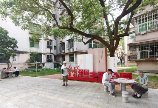 石榴园社区“学习强国”主题公园占地700余平方米,设有“学习强国”LOGO墙、“学习强国”学习小屋、知识长廊、石桌石凳等。居民在这里休息纳凉,看视频、听戏曲、听广播,随时为学习“充电”。