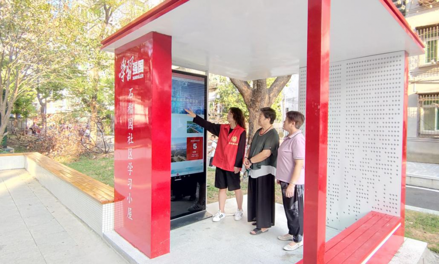 “学习强国”学习小站进社区推广以来,石榴园社区以初心驿站为基础,不断拓展功能,提升服务,打造线上学习和线下互动为一体的主题教育新平台,建成全市首个“学习强国”主题公园和智能学习小屋,学习强国知识已成为居民每日打卡的一项重要活动。