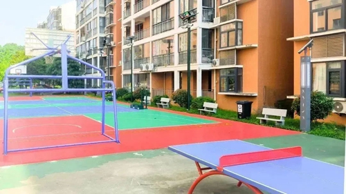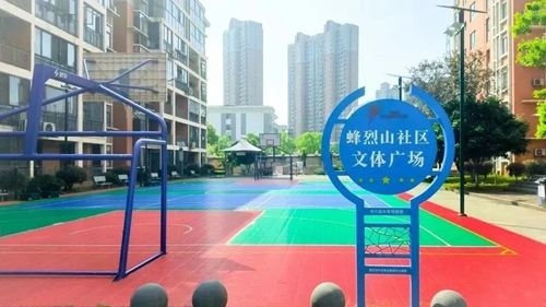 蜂烈山社区美丽乡村文体广场在设计时与周边道路建设和园林绿化相结合,将原来的空地改造升级,安置了多功能篮球架、乒乓球桌、健身棋盘桌、灯光等硬件设施,成为了社区居民健身打球的好去处。