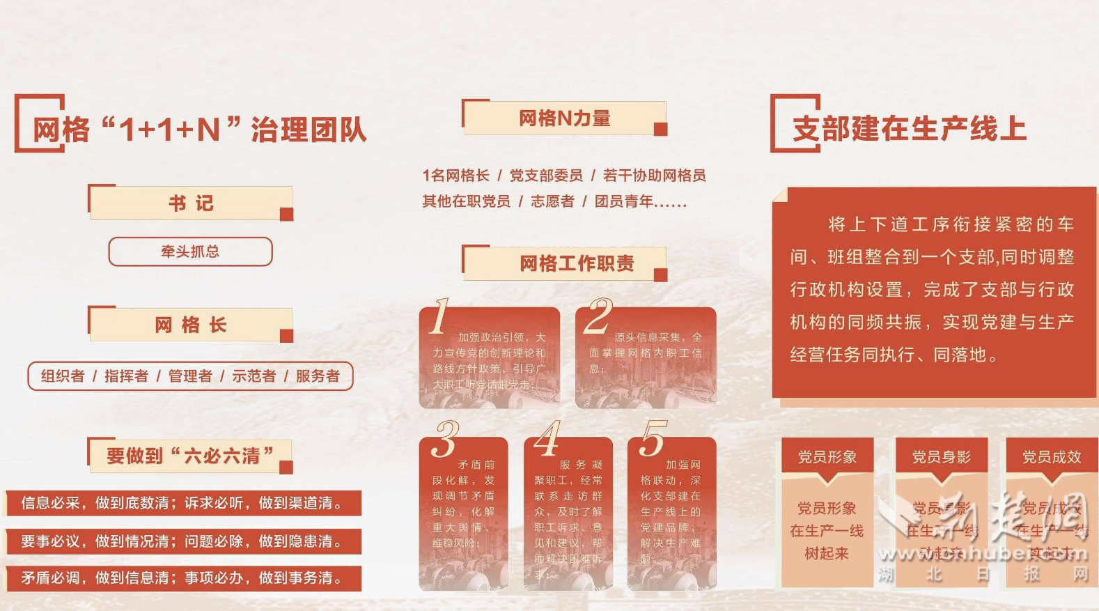 黄石新兴管业创造性提出并实施“党小组与网格组”一体化建设模式,实现了党建工作与基层管理的有机结合、同频共振,推动组织效能最大化。