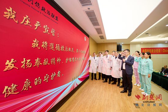 在随后举行的“高级创伤中心”揭牌仪式上,黄石市中心医院院长梁群带领创伤中心全体医护人员庄严宣誓,承诺将遵循救治规范、提升专业能力、发扬奉献精神、护佑伤者生命,做人民健康的守护者。