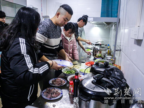 “俗话说,不出正月都是年。今天吃的是鱼,品的是校园共建共享文化,感受的是师生一家亲的浓浓情谊。”来自甘肃陇南的王俊芳在过年期间学了道新菜——水煮肉片,她今天特地采购食材下厨献艺,“看到大家将我做的菜光盘,心里美滋滋的,感觉就像与亲人吃年饭一样温暖。”